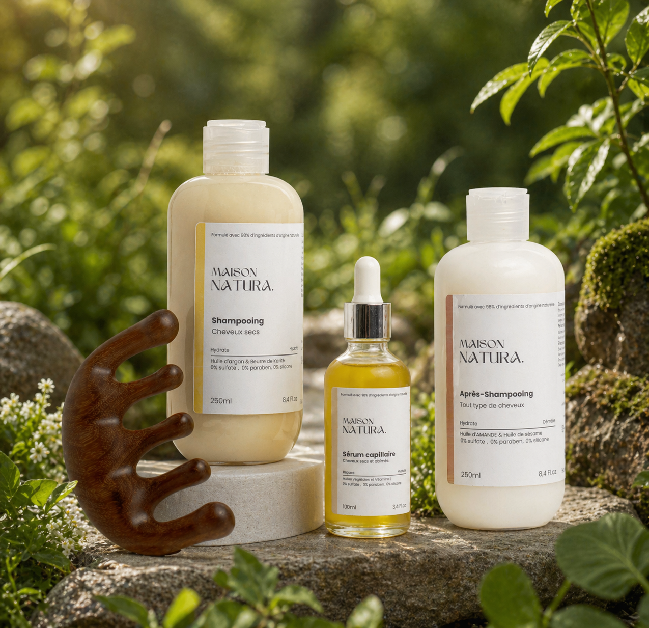 •Sans sulfates, sans silicones, sans parabènes, sans colorants